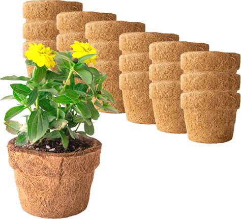 Coconut Fiber Planter Pots - 18 Pack - 5.5 in. Rim By 4.25 in. Tall - Blunt, Round - Garden Seed Starting Pots - Coco Coir Greenhouse & Nursery