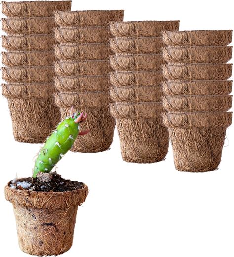 Coconut Fiber Plant Seedling Pots - Round - 24 Pack - 2.5 in. Rim X 2 in. Tall - Sustainable, Biodegradable Garden Seed Starting - Coco Coir Planters