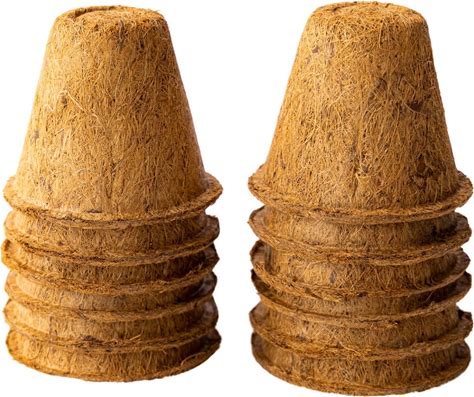 Coconut Fiber Planter Pots - 10 Pack - 4 in. Rim By 3.25 in. Tall - Round, Blunt - Garden Seed Starting - Direct Transplant - Coco Coir, Greenhouse