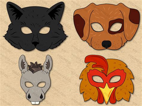 Farm And Barnyard Animals 3 Masks Printable, Cat, Dog, Donkey, Rooster (Coock, Chicken), Paper DIY Kids Adults Template. Download. Halloween