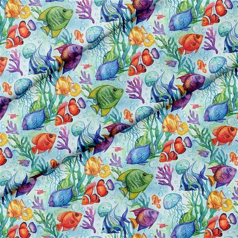 Tropical Fish Jellyfish Pattern, Fabric By The Yard, 58 In" Wide, For Sewing, Crafting, Quilting, DIY Projects, Upholstery