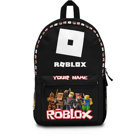 Personalized Roblox Backpack - Custom Name Backpack In Black/White Robux Design For Adults And Teens