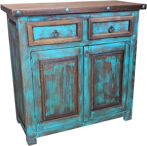 Turquoise Painted Wood Buffet - 2 Doors & 2 Drawers