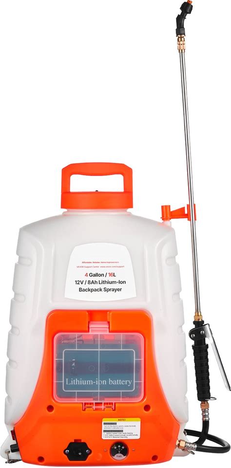 VEVOR Battery Powered Backpack Sprayer 4 Gallon Tank 0-90 Psi Adjustable Pressure 12V 8Ah Battery With 8 Nozzles And 2 Wands