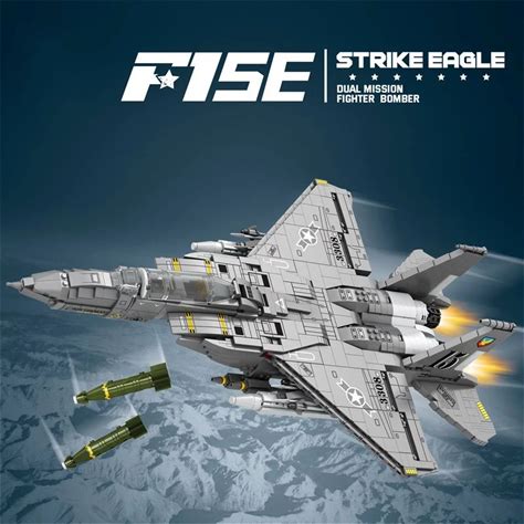 Military F-15 Strike Eagle Fighter Building Blocks Cruise Air Force Bomber Model Bricks Collect