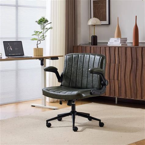 Executive Chair Upholstered Genuine Leather Ergonomic Adjustable Office Chair - Low Back Apple Green