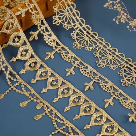 Zsbszc New 2 Yards Width 1cm Sewn Gold Lace Trim Braid Lace DIY Garment Accessories Macrame