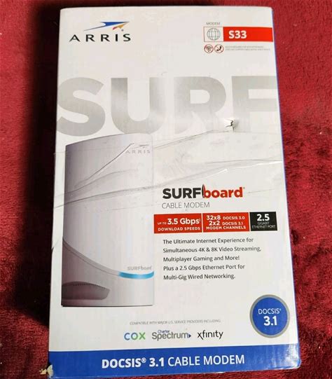 Arris Surfboard S33 32 X 8 Docsis 3.1 Multi-Gig Cable Modem With 2.5 Gbps New. ARRIS. White. Modems. 0612572216798.