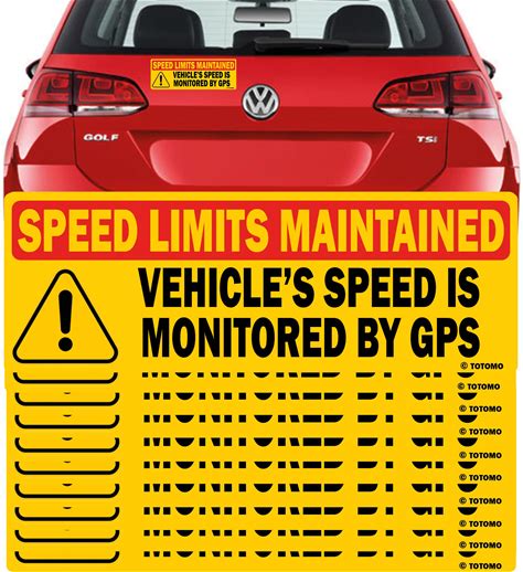 10-Pack Red Vehicle Speed Is Monitored By GPS | Speed Limits Are Maintained Safety Sticker 10"X3.5" Reflective Warning Decal Sign For Car, Truck, Van,