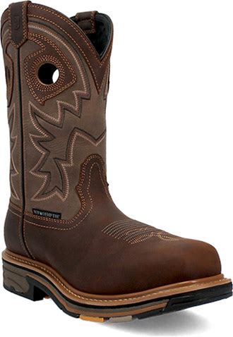 Dan Post Men's 11" Composite Toe WP Western Wellington Work Boots DP59422 in Dark Brown/Brown/Orange