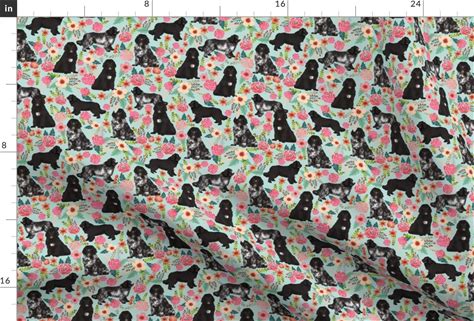 Newfie Dog Fabric - Newfoundland Dogs Landseer Dog Florals By Petfriendly - Newfie Dog Cotton Fabric By The Yard With Spoonflower