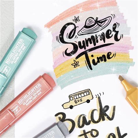 Glitter Highlighters Sparkle Markers - Chisel Tip, Pastel Colors, Eye-Friendly, 8 Color Set