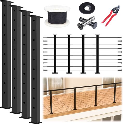 Muzata 15-20ft Modular Black Cable Railing Kit 36 Inch 4 Level Post Kit Complete Set Cable Railing System For Decks Length Adjustable Easy DIY With
