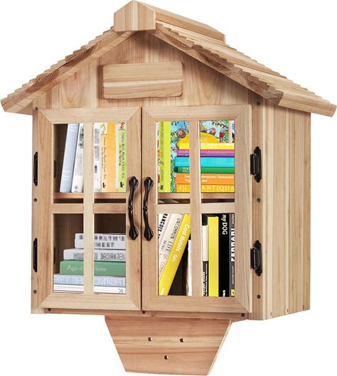Ilyapa Outdoor Library Book Box - Free Literature Exchange Kit For Outside - Little Wood Cabinet For Sharing Books And Arts - 20X14x19 Inch