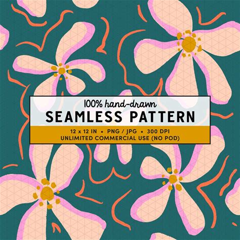 Abstract Flower Seamless Pattern, Teal And Pink Retro Floral Repeat Pattern, Hand Drawn Botanical Repeat Digital Paper, Folk Floral Pattern