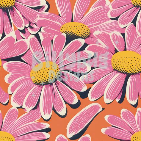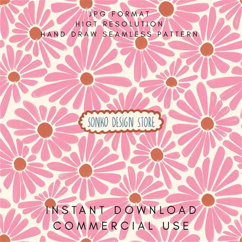 Retro Daisy Seamless Pattern - Pink Floral Digital Paper