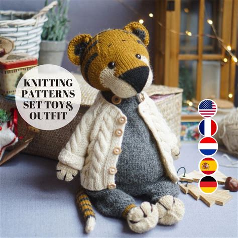 Tiger Set "English Gentleman" Knitting Patterns / Toy Knitting Patterns / Animal Knitting Patterns / All Included / Polushkabunny