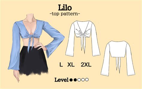 Cropped Tie-Front Top Sewing Pattern: L XL 2XL (PDF Tutorial Included
