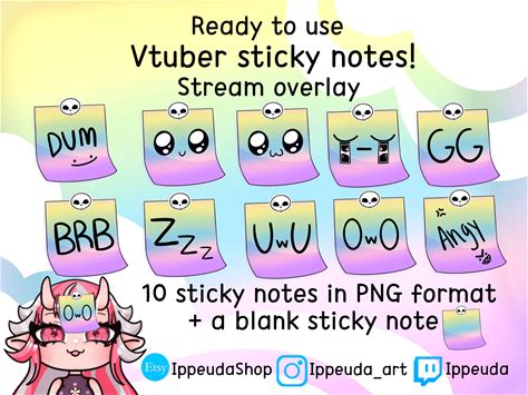 11X Rainbow Skull Sticky Note Assets |Vtuber | Pngtuber | Streamer | Vroid | Veadotube | Twitch | Stream | Asset