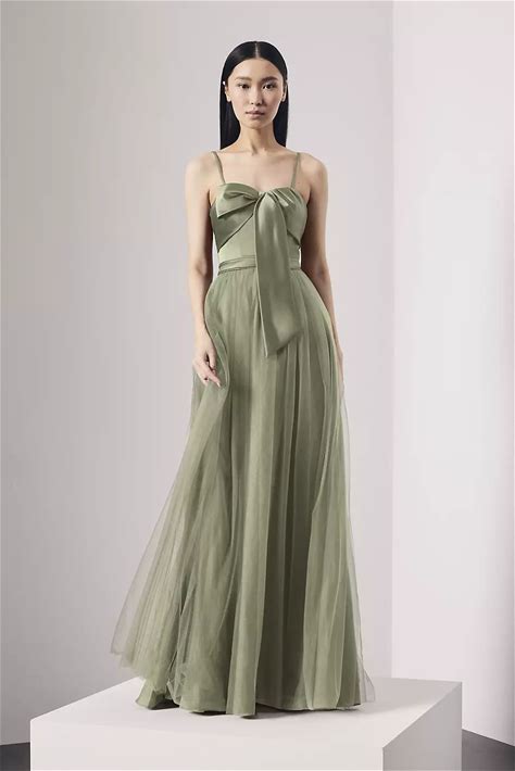 Vera Wang Bride Satin And Tulle Bow Bodice A-Line Dress In Eucalyptus | Size: Small | David's Bridal